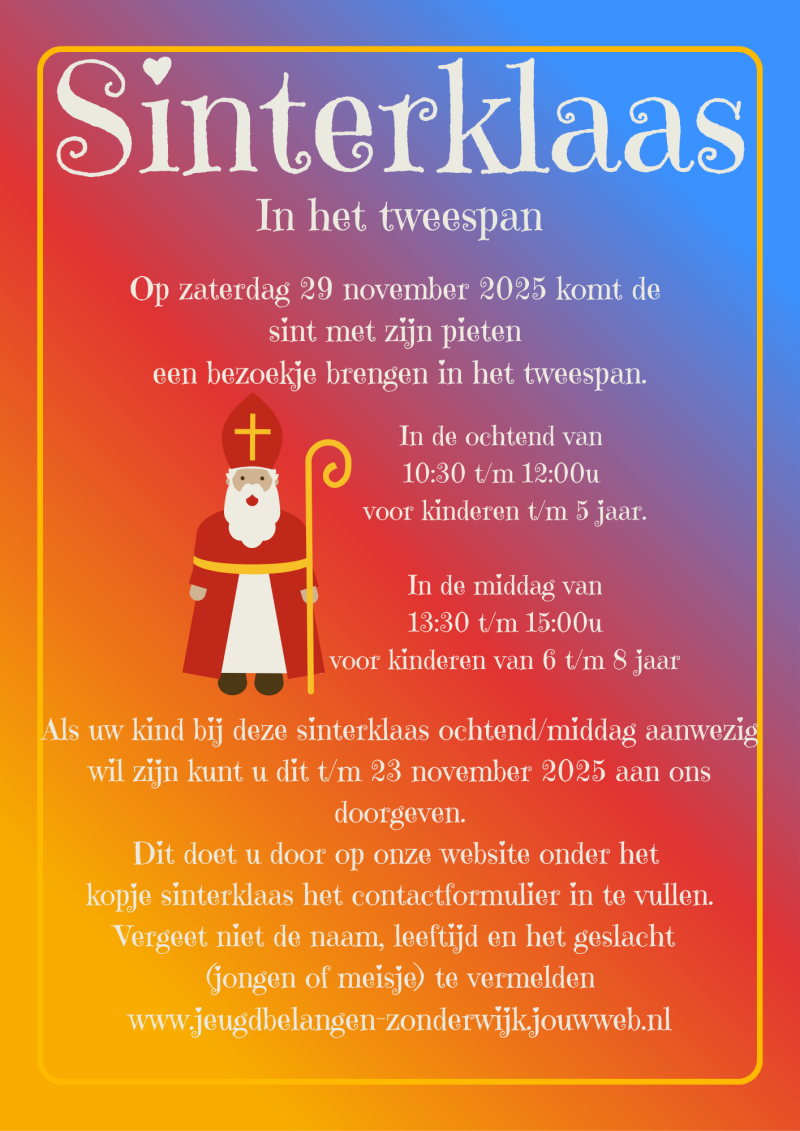 De sint en zijn pieten komen op zaterdag 29 november 2025 een bezoekje brengen aan het tweespan.